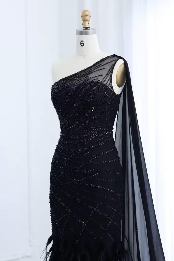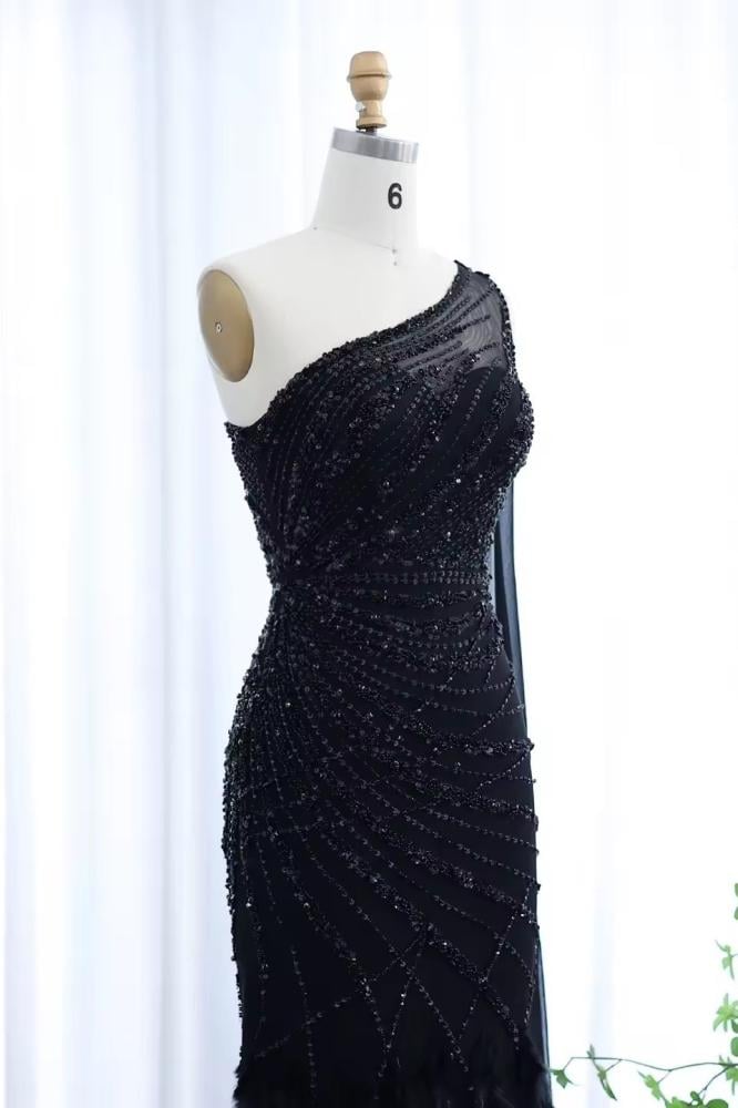 فستان سهرة أسود لامع شك بلا أكمام