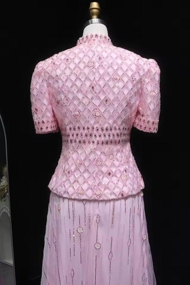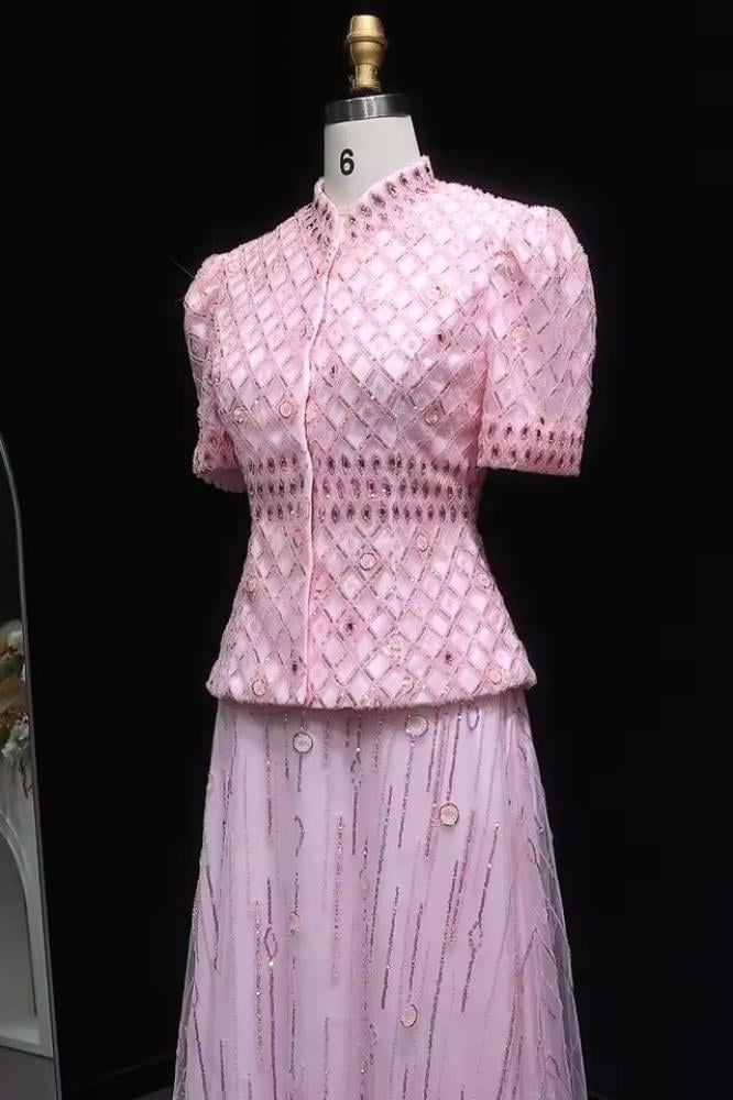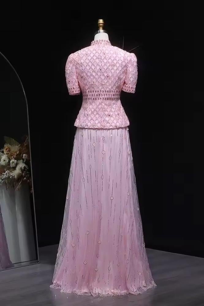 بدلة سهرة طويلة شك يدوي بالكامل قطعتين